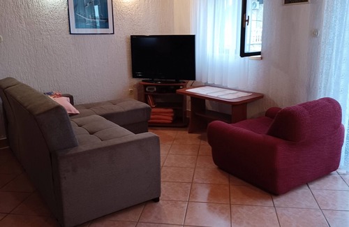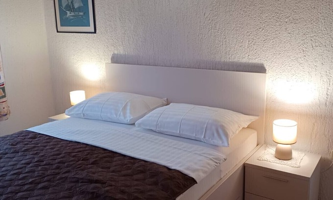 Cosy Holiday Apartment on Murter - Perfect for Couples and Small Families!Discover this charming 75 m² holiday home that offers a comfortable temporary residence for up to 4 people. The apartment features two cosy bedrooms with a total of three beds - including two double beds and an additional sofa bed - and is ideal for couples, families, or small travel groups.The modern equipped kitchen invites cooking and provides all essential appliances such as cooker, refrigerator, freezer, coffee machine, oven, and dish set. Additional amenities like WiFi, satellite TV, and air conditioning ensure maximum comfort during your stay.The apartment is located in a quiet area and offers two private parking spaces directly at the building. A special highlight is the terrace with a barbecue area, perfect for relaxed evenings outdoors. The central heating guarantees pleasant temperatures during the off-season.Nature lovers will be delighted by the proximity to the beach - a beautiful pebble beach awaits just 200 metres away. Shopping facilities and the bus station are also quickly accessible. Pet owners take note: One pet is allowed by arrangement!Note: Smoking is not permitted in the accommodation.ADDITIONAL COSTSBoat mooring - €10 per night, Airport transfer - €80.00 per trip