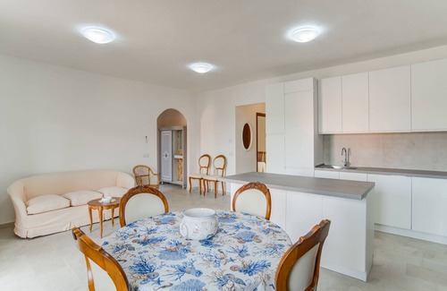 Surrounded by Mediterranean beauty, the apartment features a spacious terrace where you can unwind with a glass of local Vermentino wine or enjoy a morning espresso. The garden adds a peaceful touch, perfect for quiet moments or casual outdoor meals. With air conditioning throughout, the home remains cool and comfortable, even during the warmest days.