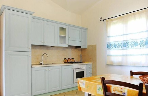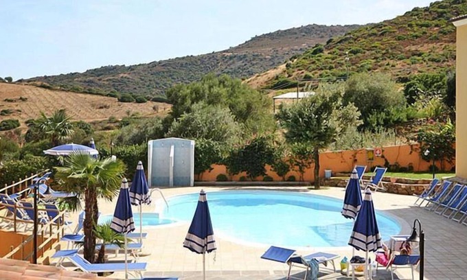 Bright and friendly complex built in Sardinian style. All apartments have access to the outdoor pool with a children's pool, where you can take a refreshing dip. The apartments have a balcony or terrace and are equipped with garden furniture. The air conditioning in the bedrooms and kitchen allows you to have a comfortable stay even on hot days After just five kilometers you will reach the wonderfully white sandy beach, where numerous water sports options, small beach bars and not forgetting the crystal clear water await you. This is what your holiday resort offers: - 2 buildings, 18 residential units - Reception, WiFi in the reception area - Bar - Community terrace - Barbecue area - Car parking spaces - For a fee: washing machine Activities: - shared outdoor pool, 110 sqm (open from mid-May to mid-October, depending on the weather/ use break: 1:00 p.m. - 3:00 p.m.), hydromassage, outdoor shower, loungers, parasols Note: Reception opening times: 8 a.m. to 1 p.m. and 4 p.m. to 8 p.m Air conditioning: in all rooms of the apartment