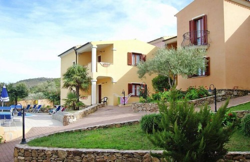 Bright and friendly complex built in Sardinian style. All apartments have access to the outdoor pool with a children's pool, where you can take a refreshing dip. The apartments have a balcony or terrace and are equipped with garden furniture. The air conditioning in the bedrooms and kitchen allows you to have a comfortable stay even on hot days After just five kilometers you will reach the wonderfully white sandy beach, where numerous water sports options, small beach bars and not forgetting the crystal clear water await you. This is what your holiday resort offers: - 2 buildings, 18 residential units - Reception, WiFi in the reception area - Bar - Community terrace - Barbecue area - Car parking spaces - For a fee: washing machine Activities: - shared outdoor pool, 110 sqm (open from mid-May to mid-October, depending on the weather/ use break: 1:00 p.m. - 3:00 p.m.), hydromassage, outdoor shower, loungers, parasols Note: Reception opening times: 8 a.m. to 1 p.m. and 4 p.m. to 8 p.m Air conditioning: in all rooms of the apartment