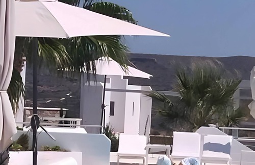 The stone walls combined with the completely white houses equipped with minimalist furniture create a very attractive atmosphere. Our small lobby area offers excellent sea views and overlooks the pool area and the breakfast area with pergola on the terrace.