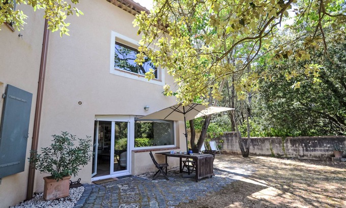 Fuveau 14 km from Aix-en-Provence: 2-family house "Kerkor". In a hamlet, in a quiet, elevated position, in the countryside. For shared use: swimming pool angular fenced (10 x 6 m, depth 120 - 250 cm, seasonal availability: 01.Jun. - 30.Sep.). Pool maintenance by the owner/gardener. Private: terraced garden, 200 m2 (fenced) trees. In the house: central heating system. Motor access to 10 m from the house (via unmade road). (2 steps). Parking on the premises. Shop 2 km, grocery 2 km, supermarket 2 km, restaurant 2 km, bus stop "Cimetière" 1.3 km, sandy beach "Le Resquiadou" 35 km, swimming bay 35 km, concrete beach 38 km. Sports harbour 35 km, golf course (18 hole) 4 km, tennis 2 km, riding stable 4 km. Nearby attractions: Cassis 35 km, Marseille 37 km, Bandol 54 km. Hiking paths: Grand Site Sainte-Victoire, Parc Naturel Régional du Lubéron. Please note: car recommended. Object suitable for 2 adults + 2 children. The owner lives on the same property.
