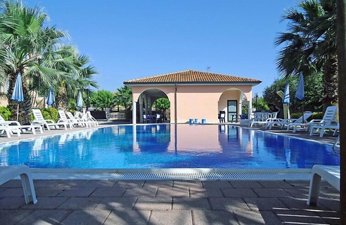 Marina di Ascea: Beautiful holiday development "Laura", surrounded by trees. In a busy, sunny position, 350 m from the sea, 350 m from the beach, located by a road. For shared use: garden (fenced) plants and flowers, swimming pool (15 x 6 m, seasonal availability: 15.May. - 15.Sep. pool opening hours: 09:00-21:00). Outdoor shower, garden furniture. In the complex: reception, bar, WiFi, sun terrace, washing machine (for shared use, extra). Linen change weekly (suppl. charge extra). Towel change weekly (suppl. charge extra). Room cleaning daily (included). Breakfast (included). Parking at the house. Shop, supermarket 150 m, bus stop 1 km, railway station "Ascea" 2 km, sandy beach 350 m. Tennis 400 m, minigolf 1 km, riding stable 600 m. Nearby attractions: Zono Archeologica Elea-Velia 300 m, Paestum 40 km, Amalfi Coast 90 km, Sorrentino Peninsula 140 km, Pompei 100 km, Napoli 140 km. Please note: the photograph shows a typical example. Additional accommodations can be booked.