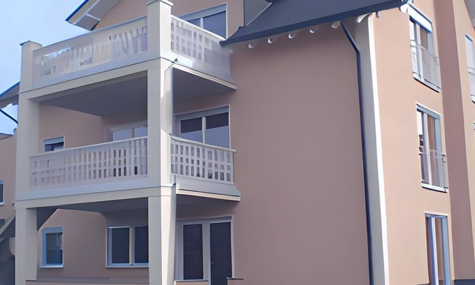 Apartment in new building (85 sqm) Quiet location, Non smoking apartment, private entrance, 2 bedrooms with double bed, cable TV, kitchen incl. Microwave and dishwasher, breakfast bar, bathroom, terrace incl. Barbecue and lawn or Playground, 2 parking spaces, playground nearby, indoor swimming pool and shopping possibilities in town. Additionally sleeping possibility for 2 more people in the living room available. Pets are not allowed. Children's discounts on request.