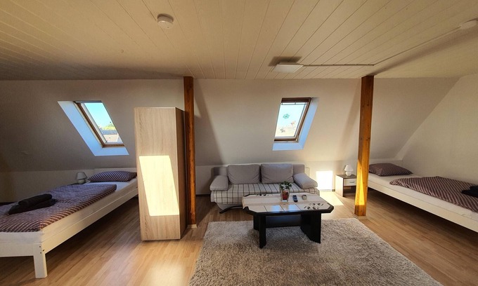 This pretty holiday home in Wilhelmshaven is an ideal starting point for families and friends to explore the city and region, but also for fitters who are temporarily on site. Located in the attic, it offers a cozy ambience and comfort. Wilhelmshaven is located on the Jade Bay and the Schleswig-Holstein Wadden Sea National Park and therefore offers its visitors a great combination of beach holidays, sightseeing and sports activities. Take a harbor tour or a day trip to Heligoland, grab a bike and explore the area or discover urban life. Everything you need for your daily needs can be found here in the immediate vicinity. The kitchen is well equipped and allows you to cook at home if necessary. Parking is available on site. About Belvilla : When you stay in a Belvilla home, you can rest assured of a unique holiday home in ideal surroundings at an attractive price. The portfolio of accommodations consists of more than 40,000 holiday homes in 20 European countries. Interested in a weekend getaway, a summer or winter sports holiday or simply a short break? Do you prefer the coast, countryside or mountains? Whatever your preference, there is a Belvilla home to meet your needs, from a cosy gîte for two to a castle big enough for the entire family, from an apartment in the heart of Rome to a cabin in the middle of nowhere, from a simple tree house to a luxury dream villa and from close to home to the other side of Europe. A Belvilla home gives you the freedom to enjoy breakfast in your pyjamas or continue a good conversation into the morning hours without having to worry about the bar's closing time. Prepare gourmet meals with fresh local ingredients in your own kitchen and take advantage of having your own swimming pool to do as many cannonballs as you want! In other words, you can enjoy complete privacy in your home away from home.