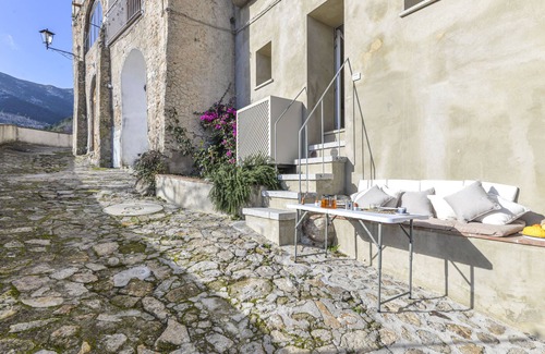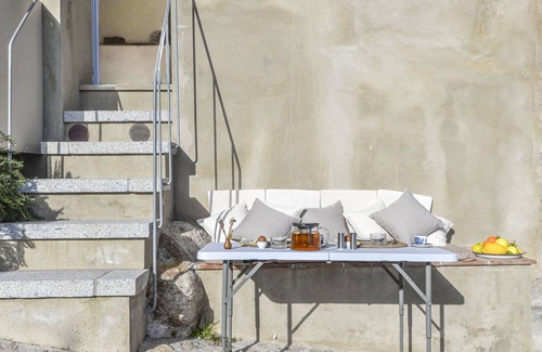 "Noce", 1-room apartment 20 m2, on the ground floor. Fully renovated in 2023, tasteful and cosy furnishings: open living/dining room with 1 double sofabed (160 cm), dining table and TV. Exit to the terrace. Open kitchen (oven, 4 induction hot plates, toaster, kettle, microwave, electric coffee machine). Shower/bidet/WC. Electric heating, air-conditioning. Heating available only from 01.11. to 15.04. Small terrace. Terrace furniture. Beautiful view of the sea and the mountains. Facilities: iron, hair dryer. Internet (WiFi, free). Please note: non-smokers only. Maximum 1 pet/ dog allowed. Private entrance. The outdoor space consists of an outdoor seat and table on the alley, with sea and mountain views. IT049010C2IPEPDYNV