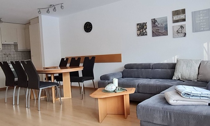 The 4-room appartment (85 m2, 1st floor) has a cosy and friendly atmosphere. Living room, kitchen, dining corner. 3 bedrooms ( 2 extra beds possible), shower/WC. South- and Westbalcony. DVD, flat screen TV, Internet, free wi-fi.