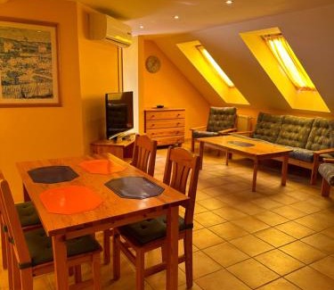 Featuring a garden, Apartment Roman villa features accommodations in Hévíz. This property offers access to a balcony, free private parking, and free Wifi. Staff on site can arrange airport transfers. The air-conditioned apartment consists of 2 bedrooms, a living room, a fully equipped kitchen with a dishwasher and a coffee machine, and 1 bathroom with a shower and a hair dryer. Towels and bed linen are offered in the apartment. For added privacy, the accommodation features a private entrance. For those times when you'd rather not eat out, you can cook on the barbecue. The apartment has a picnic area where you can spend the day outdoors. Thermal Lake Hévíz is 2.2 miles from the apartment, while Sümeg Castle is 17 miles from the property.