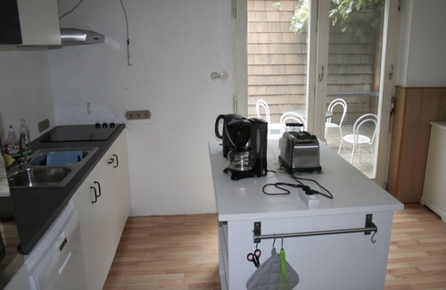 The highlight of this holiday apartment with bedroom and eat-in kitchen with everything you need is the apartment's own romantic, spacious terrace and barbecue, which is sheltered between the walls of the house and has a wooden parapet surrounded by wine.