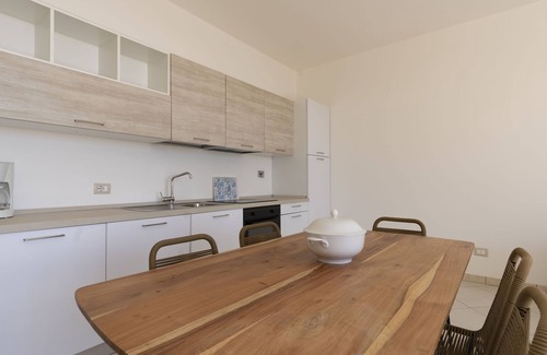 "Salvia", 3-room apartment 70 m2, on the ground floor. Bright, practical and modern furnishings: living/sleeping room with 1 double sofabed (140 cm), dining table. Exit to the patio. 1 room with 1 french bed (160 cm). 1 small room with 1 sleeping facility (60 cm, length 180 cm). Open kitchen (oven, dishwasher, 4 induction hot plates, freezer, electric coffee machine). Shower/WC. Gas heating. Patio. Terrace furniture, barbecue (portable), deck chairs. Facilities: washing machine, children's high chair, baby cot. Internet (WiFi, free). Parking (1 car). Maximum 1 pet/ dog allowed. IT008052C2G58FJGA2