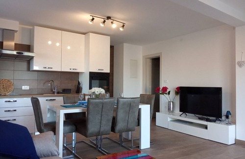 De lux apartment, with 2 big bedrooms, 2 bathrooms, and large livingroom. Brand new. Beautifull big windows with sea and garden view. Quiet and relaxing area. Fully equipped. Perfect for 4-6 persons. Rated ****. Island Ilovik is situated near Island Lošinj. It is well known for its cristalclear water and untuched nature. It has beautifull small bays with hidden beaches all around the Island. It is great for families because there are no cars on the island. On Ilovik guests can enjoy in beautiful nature, park for chilldren, water activities, several nice restaurants, taxi boat services that can take You for rides and swimming, and other activities in nature.