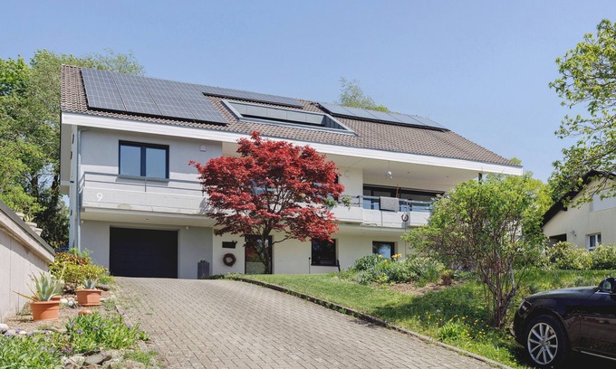 The apartment is located on the first floor of our two-family house. The entrance is separate and leads you directly through the garden. The apartment was completely renovated in 2021 and consists of a living area, a bathroom and a bedroom. In the living area there is a comfortable sofa with armchair and a modern kitchenette with ceramic hob, oven, dishwasher, coffee machine (Senseo pad), large fridge and a harmoniously integrated dining area. The spacious bedroom with a double bed and a writing and reading area invites you to linger. Garden furniture is available in the outdoor area and the lawn can also be used. There is a garage for storing bicycles or motorcycles.