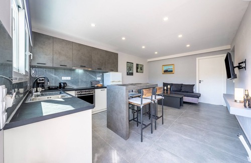 The apartment "Starry Sky Luxury Apartment 2" in Corfu is a great destination for families. The 70sqm property consists of a living room, a full kitchen, a dining room, 2 bedrooms and a bathroom and can accommodate 6 people. Available amenities include high-speed Wi-Fi, air conditioning and Smart TV.