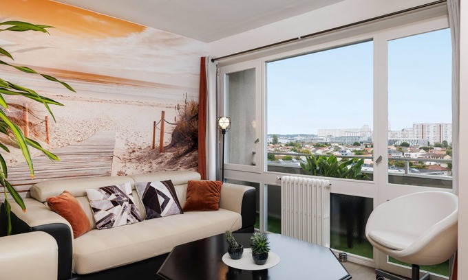 The holiday apartment T4 Avec Tennis with step-free interior is located in Le Bouscat and is perfect for an unforgettable holiday with your loved ones. The 90 m² property consists of a living room, a well-equipped kitchen, 2 bedrooms and 1 bathroom as well as an additional toilet and can therefore accommodate 6 people. Additional amenities include high-speed Wi-Fi (suitable for video calls), a smart TV with streaming services, air conditioning, a fan as well as a washing machine. The building in which the accommodation is located has an elevator. This vacation rental features a private balcony for your evening relaxation.