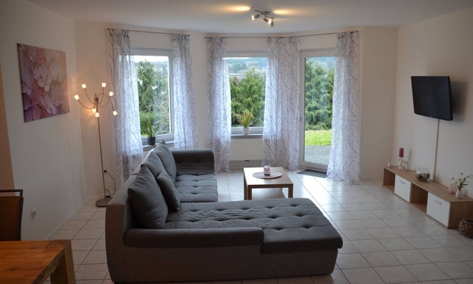 Located in the highlands of Neidenbach, the high-quality and modern apartment with terrace and lawn is for sole use. Due to the central location of Neidenbach you can quickly reach the numerous cycling and hiking trails. Even a trip to Luxembourg, Trier, Bitburg or the Vulkaneifel with its numerous mars can be reached relatively quickly by car. Since the apartment is located on the side of the traffic road, you will experience absolute peace with us.