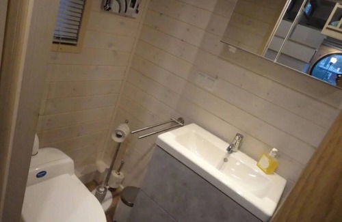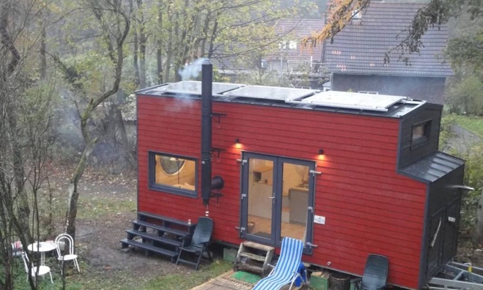 Minimalism: 22.5 square metres + 2 sleeping berths, separate toilet. - Enjoy nature. Facilities also include WLAN, a TV, washing machine, children's books and toys. There is also a shared sauna on the property. A baby cot and high chair are also available.