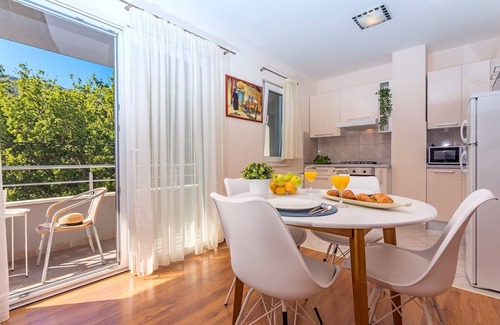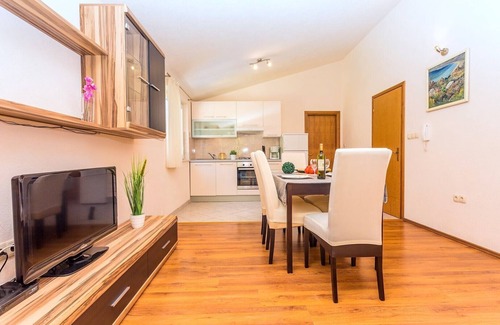 Apartment Antony is well equipped and located on the upper first floor and offers Apartment No.2 (4+2 person) that has two bedrooms (one bedroom with 1 king-size bed, and another with 2 single beds), a living room with sofa bed and kitchen, a family bathroom. Apartment No.1 (2+2 person) has one bedroom with a king-size bed, a living room with a sofa bed and kitchen, and a family bathroom. The apartments have two balconies and a terrace.