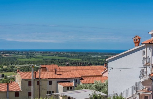 Viva Holiday House is a cozy and nicely furnished house with a sea view. It consists of a kitchen equippd with all necessary kitchen utensils and appliances (oven, microwave oven, stove, coffee maker, dishwasher, refrigerator, freezer, fan / extractor, toaster, water kettle), connected to a dining area and an air-conditioned living room with a seating area and satellite TV. Furthermore, there are two bedrooms with double bed, two bathrooms with shower, a washing machine and a covered terrace with outdoor furniture. In the basement there is a separate studio apartment with two separate beds that can be made into a double bed, a bathroom with a shower and a small kitchen. This studio apartment is only accessible via a separate entrance from the outside of the building. The guests can use a shared pool and garden during their stay. WiFi and parking are also on the guests disposal. The apartment is ideal for a relaxing and comfortable vacation with family or friends. In the area, there are many marked cycle paths, historical and picturesque cities like Višnjan, Tar, Porec and Motovun, which offer many irresistible offers. In only 10 minutes by car you can reach the most beautiful beaches, where you can enjoy in a relaxed atmosphere and spend an unforgettable holiday with your loved ones. A group of young people is not allowed.