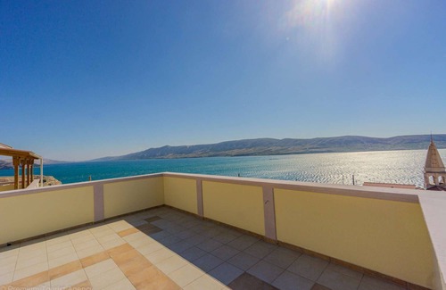 Welcome to our lovely apartment on the beautiful island of Pag, very close to the nice beach (120meters). See amazing views of the sea and mountains. Our apartment makes your stay comfy with free WIFI, air conditioning, and easy parking. There's a beach bar and good restaurants just a few steps away for a lively island feel. Explore the special charm of the area, like the cool stone desert of Pag or other pretty places. Come to Pag's island and make our apartment your place for relaxing and having fun.