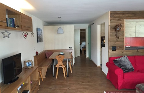 Haus Cresta occupies an elevated position just above the village centre giving fantastic views of the skiing area and glaciers. It is located just off the main nursery slopes but is only a 2 minute walk onto the main street where you will find plenty of shops, bars and restaurants. The apartment has recently been completely renovated with a new bathroom,kitchen, new beds and new windows making it very warm and cosy in winter. The lounge has a large sofas, satellite TV, DVD and wifi available. 2 double bedrooms, one with an additional private balcony. Fully equipped kitchen with door onto the main balcony and bathroom with bath and separate shower unit. There is plenty of storage space in the apartment as well as a boot room on the ground floor to store skis and boots.