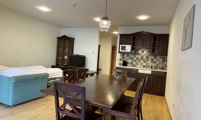 The apartment is ideal for families, groups of friends, or couples looking for a comfortable and relaxed base for their winter vacation.