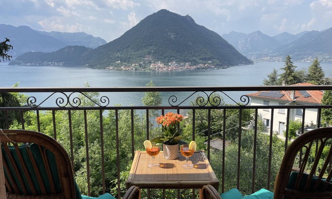 Inserted in a natural botanical garden, the named Montisola apartment within the Villa Giuliana property in Sulzano is located on the second floor with a wonderful view of the lake and the island of Montisola from all rooms (living room and kitchen, bathroom, bedroom).