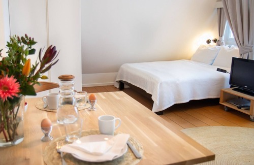 Do you love an authentic view? Then reserve the garden room. This apartment overlooks the old town and the monumental Lutheran church.