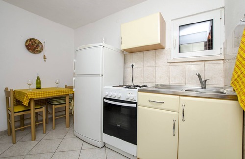 Accommodation Zdenko offers space up to 2 guests. The picture perfect nature and rocky beaches are 200 m away. Share the photos of your well-deserved vacation using Internet available for your use. No crowds, no fixed mealtimes and no overcrowded terraces - awake your inner chef using available Grill and indulge in delicious local food. Refresh and unwind on 15 m2 terrace we are sure you’ll love. Nice little added bonus is view of Green area and garden.