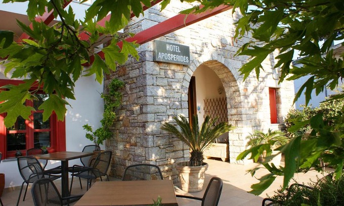 Based on the information reported by the owner or manager, the Aposperides Hotel indicates 1 day stay policy at this hotel. Guests are cautioned that the minimum stay policy may differ based on seasonality or availability and may be at the discretion of the owner or manager.