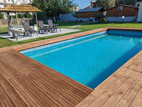 Food & DrinkBottle of water, Tea/Coffee maker, Chocolate/CookiesBathroomBathtub or shower, Body soap, Private bathroom, Shower, Toilet paper, Bathrobe, Free toiletries, Shampoo, Hairdryer, Bidet, Shower cap, Toilet, Guest bathroom, TowelsGeneralMosquito net, Private entrance, Trash cans, Hardwood or parquet floors, Carbon monoxide detector, Safe, Air conditioning, Iron, Heating, Interconnecting room(s) available, Hypoallergenic, Fire extinguisher, Smoke AlarmMedia & TechnologyStreaming service (like Netflix), TV, Flat-screen TVOutdoorsPrivate pool, Outdoor furniture, Outdoor dining area, Barbecue, Terrace, BalconyKitchenDryer, Kitchenware, Cleaning products, Stovetop, Refrigerator, Kitchen, High chair, Dining table, Washing machineLiving AreaDesk, Sofa, Sitting area, Dining areaViewInner courtyard view, Sea view, Pool view, Quiet street view, Mountain view, View, Garden viewBedroomLinens, Wardrobe or closet, Childrens' cribsAccessibilityUpper floors accessible by stairs onlyBuilding CharacteristicsPrivate apartment in buildingRoom AmenitiesClothes rack, Drying rack for clothing, Hypoallergenic pillow, Sofa bed, Socket near the bed, AdapterEntertainment & Family ServicesBaby safety gatesPool and SpaShallow end |