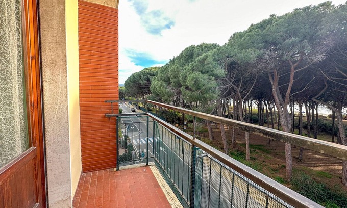 Very bright apartment in a strategic position in front of the pine forest and the long sandy beach of Follonica. On the third floor (without lift) of a typical building in Follonica, its strong point is the view over the green of the pine forest and then of the sea just behind.Ideal for a family or a group of friends, the apartment offers two large bedrooms. A double bedroom with an additional single bed and a bedroom with two single beds. After the entrance you will find a corridor connecting all the rooms: on the right, a large kitchen equipped with a dining table and a "service" balcony with the washing machine, followed by the two bedrooms and the bathroom with shower. From the double room there is access to a small balcony with a view of the pine forest and the sea.At the service of the apartment there is a 'garage' on the back of the building where guests can store their bicycles, sports or beach equipment.The location of the apartment is ideal for an unforgettable beach holiday: the pine forest and the sea can be reached by just crossing the road and in a few minutes you can reach the center of Follonica with its bars, restaurants, boutiques, and the splendid sea promenade. You don't even need to take the car, in front of the apartment you find Follonica’s cycle path.Furthermore, the Municipality of Follonica is culturally very active and during the summer season and organizes exhibitions, concerts, markets, events, etc.In one word, the perfect place for a peaceful and problem-free beach holiday. Not included in the rental price: - Final cleaning (€ 70.00) - Linen and towels (rental € 20.00 per person and stay)CIR: 053009LTN1835CIN: IT053009C2XFU6I895