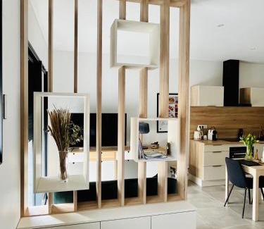Appartement centre de Roanne 38m2 is located in Roanne, just 3.2 miles from The Scarabée and 29 miles from Feurs hippodrome. Housed in a building dating from 2023, this apartment features free Wifi and free private parking. Roanne Theatre is 1.7 miles away and André Vacheresse Area is 3.1 miles from the apartment. This air-conditioned 1-bedroom apartment comes with a seating area, a flat-screen TV, and a fully equipped kitchen with a dishwasher. Towels and bed linen are available in the apartment. For added privacy, the accommodation has a private entrance and soundproofing. Popular points of interest near the apartment include House of crafts, Roanne Train Station, and Roanne Port. Clermont-Ferrand Auvergne Airport is 75 miles from the property.