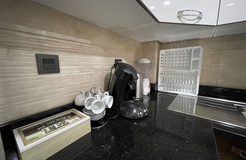 This 2-bedroom, 1.5-bathroom rental features a dining area and air conditioning. Bathroom amenities include a bidet, towels, and toilet paper. Prepare a home-cooked meal in the kitchen, complete with an oven, a stovetop, and a refrigerator, as well as a coffee maker, an electric kettle, and a lobster pot. And because there's access to laundry facilities, you can go a bit lighter on your packing.