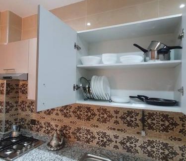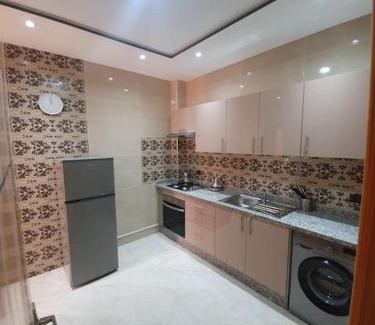 This apartment offers accommodations with a balcony. Appartement Maghrib Jadid features 2 bedrooms, a fully equipped kitchen with an oven and a fridge, a washing machine, and 1 bathroom with a hair dryer. A flat-screen TV is featured. The accommodation is non-smoking. Tangier Ibn Battuta Airport is 51 miles away.