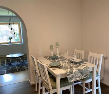 Food & DrinkTea/Coffee maker, Bottle of waterBathroomTowels, Toilet paper, Bathtub, Private bathroom, Toilet, Guest bathroomMedia & TechnologyFlat-screen TV, Radio, CD player, Satellite channels, TVKitchenDishwasher, Kitchenware, Wine glasses, Electric kettle, Oven, Kitchen, Coffee machine, Dining table, Refrigerator, Stovetop, Cleaning productsLiving AreaDining area, Sitting area, Desk, SofaGeneralKey access, Private entrance, Smoke Alarm, Fire extinguisher, Hardwood or parquet floors, Trash cans, HypoallergenicBedroomLinens, Wardrobe or closetViewMountain view, Garden viewOutdoorsOutdoor furniture, Outdoor dining area, TerraceAccessibilityEntire unit located on ground floorBuilding CharacteristicsPrivate apartment in buildingRoom AmenitiesNon-feather pillow, Clothes rack, Sofa bed, Drying rack for clothing |