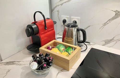 Appartements à Dax - 4 min du Centre-Ville, 12 min de la Gare - Arrivée autonome enjoys a location in Dax, a 14-minute walk from Sainte-Marie Cathedral and 18 miles from Gaujacq Castle. The air-conditioned accommodations are a 9-minute walk from Dax Train Station. Each unit comes with a fully equipped kitchen with a dining table, a flat-screen TV with streaming services, and a private bathroom with shower, a hair dryer, and free toiletries. Free Wifi is accessible to all guests, while certain rooms are fitted with a balcony. At the apartment complex, every unit comes with bed linen and towels. Courant d'Huchet Nature Reserve is 19 miles from the apartment, while Seignosse Golf Course is 21 miles from the property. Biarritz Airport is 36 miles away.