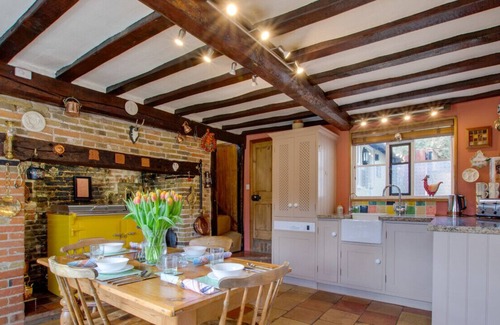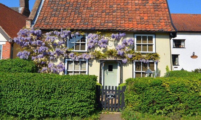 This pretty wisteria-clad cottage sits at the heart of the ancient village of Saxlingham Nethergate and yet is just a few miles from the bustling city of Norwich. Grade 11 listed and in parts dating back to the 15th Century, the owners have created a beautiful and characterful cottage. There is a bedroom on both the ground and first floor and unusually for a cottage, the impressively beamed and vaulted sitting room is also on the first floor. With a Rayburn in the kitchen, elegant furnishings and decor, this delightful cottage is the perfect spot to relax in. The village itself is in a Conservation Area, there are some lovely walks and bike rides on the doorstep and some excellent restaurants nearby. Also within easy reach is an 18 hole golf course and carp and coarse fishing lakes.