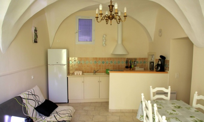 Beautiful 50m² T3 ground floor apartment in the historic heart of the village. 1Living room 1 fitted kitchen, dishwasher, washing machine, fridge freezer, microwave oven. 1 bedroom with double bed. 1 bedroom with 3 sleeping places. 1 bathroom wc Free access to tennis and swimming pool (open on 01/06) 10 minutes walk from the gorges Rental of pedalos, canoes, electric boats nearby Climbing and hiking. Located between the lake of Ste Croix, Esparon and the Lavensole plateau.