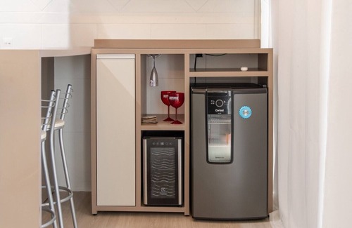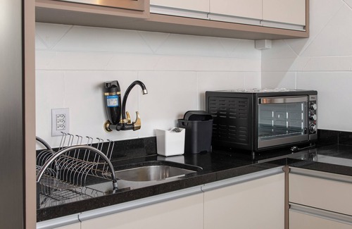 -Cozinha equipada com todos os utensílios e eletrodomésticos necessários para preparar e servir suas refeições no conforto do local.