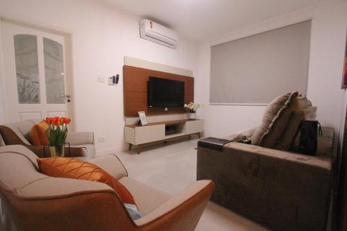 Apto32-Encantador -2 quartos- em Santos-SP com ar condicionado offers accommodations in Santos, a 6-minute walk from Miramar Shopping and 3.1 miles from Santos Bus Station. The air-conditioned accommodation is a 6-minute walk from Gonzaga Beach. There's free private parking, and the property provides a paid airport shuttle service. With free Wifi, this 2-bedroom apartment offers a cable flat-screen TV, a washing machine, and a fully equipped kitchen with an oven and microwave. The apartment offers bed linen, towels, and laundry service. Brisamar Shopping is 3.8 miles from the apartment, while Litoral Plaza Shopping is 7.2 miles away. Sao Paulo/Congonhas Airport is 43 miles from the property.