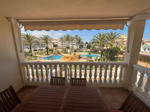 Featuring a garden, Aquamarina - Serviden features accommodations in Denia. This property offers access to a balcony and free private parking. The apartment provides an outdoor swimming pool and an elevator. Providing a terrace and pool views, the spacious apartment includes 2 bedrooms, a living room, flat-screen TV, an equipped kitchen, and 1 bathroom with a bath. Towels and bed linen are provided in the apartment. The property offers garden views. Els Molins Beach is a 5-minute walk from the apartment, while Denia Castle is 3.8 miles away. Alicante–Elche Miguel Hernández Airport is 66 miles from the property.