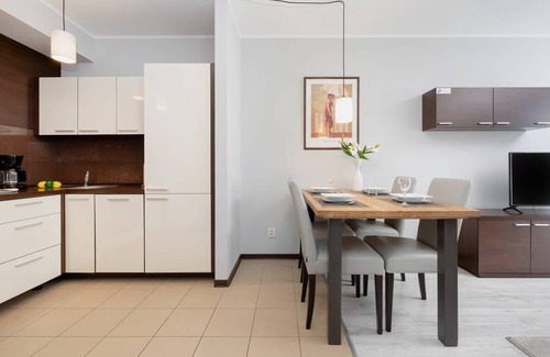 Located in a modern residential area in Kołobrzeg, just 300 metres from the beach, this apartment offers a comfortable stay in a great location. It features a bedroom, a balcony and access to additional amenities such as a garage, swimming pool, gym and spa (for a fee). Thanks to express check-in and check-out and the option of issuing a VAT invoice, your stay will be comfortable and hassle-free. It is an excellent choice for those who value relaxation and modern surroundings.