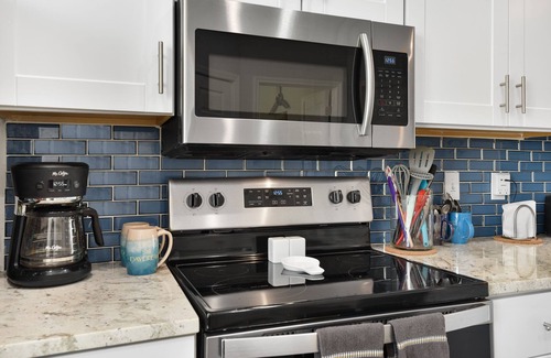 Offers a well-equipped kitchen with granite countertops and stainless steel appliances. Dining table can seat 5 and the bar can seat 4. Legends Ultimate Arcade Machine that will entertain all generations with 300 games installed.
