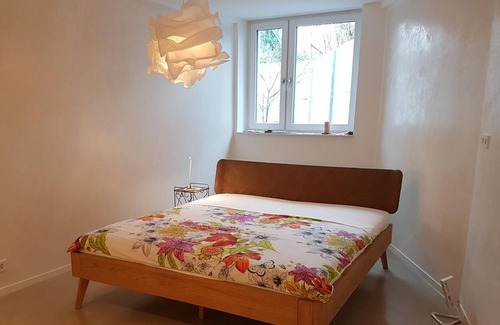 Modern and stylish: Your luxurious architect's house is suitable for up to three people and has an Art Nouveau fireplace, a beautiful garden area with terrace and balcony, a modern and bright kitchen and a PC workstation (gallery). The property is centrally located in Baden and adjacent to Alsace and Strasbourg. The next bookkeeping point is in front of the house. The Sonnen pharmacy is about 150 meters away. There are also various restaurants and shops in the surrounding area. There is an ideal connection to the A3 and A5 (10 minutes drive). The Europapark Rust is approx. 51 km away. The Baden Airpark is about 25 minutes away by car. A separate entrance is available. A parking space is available free of charge. Please note that children cannot be accommodated in this property as it is an open construction (gallery) and there is a risk of falling.