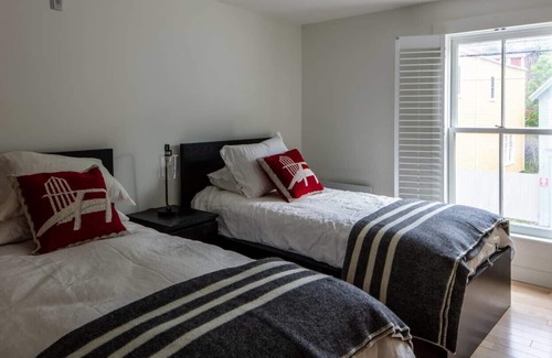 European appliances, contemporary leather furniture, hardwood floors, private laundry facilities, a sprinkler system, and historic touches make your stay memorable right in the center of the historic town of Lunenburg. 1 of the 2 bedrooms has a king-sized bed and an en suite half bathroom. Luxurious linens and Beautyrest mattresses will add comfort to your stay.Come visit our amazing loft-style accommodations in beautiful Lunenburg, a UNESCO World District at the South Shore of Nova Scotia. Our lofts have been designed by internationally acclaimed MacKay-Lyons Sweetapple Architects and offer you all that you need to have a memorable stay.