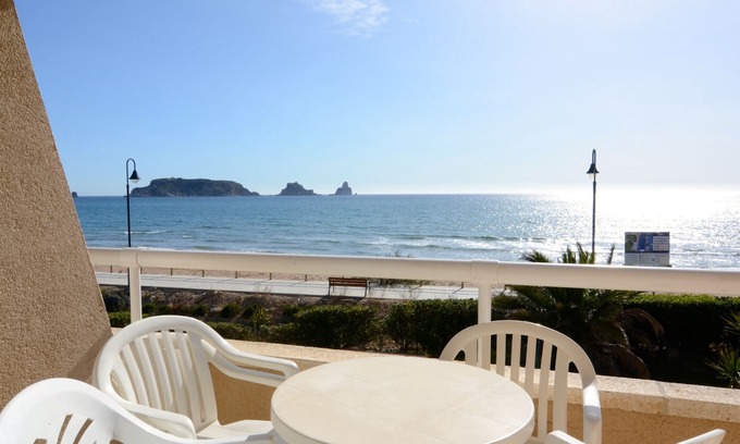 Embark on a journey at your perfect Estartit hideaway! This charming beachfront apartment, with 1 bedroom for up to 3 guests, cradles you. Its well-appointed kitchen and a 12 m² terrace, unveil breathtaking waterfront views. Essential entertainment is included with a TV, radio, and DVD player, and optional internet access coulb be arranged for 10€ per day (subject to availability). You'll find practical amenities like a washing machine, iron, and covered parking. Sheets are included in the price, and you have the option to add towels to your booking for 5€ per person.The supermarket is just 200 meters away. Take a dip in the communal pool, then listen the song of the seabreeze on a 25-meter stroll to Els Griells sand beach and immerse yourself in the Mediterranean's embrace.Explore nature's beauty at the nearby protected areas (Montgrí baix-Ter, Medes Islands) and the bird reserve just few a hundred meters from your flat. Golf courses, train station, and the airport within reach, here your poetic beachfront adventure unfurls.