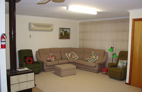 Designed and built by a farmer in 1985 for retirement this comfortable home has a spacious combined kitchen, dining and lounge area with reverse cycle air conditioning. Can cope with additional day visitors