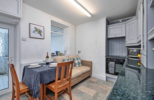 The cottage comprises of a double room, and a bunk room, with extra pull out bed, separated from the living areas by a gorgeous thick heavy curtain . This cottage welcomes a four-legged friend, and has a useful utility room, with washing machine, for cleaning down after a day at the beach.