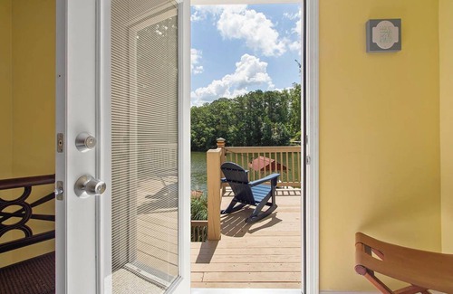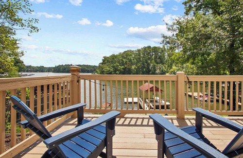 Waterfront home with private boat slip! Relax and enjoy the peace while listening to nature at it's finest. Leave the hustle and bustle behind and enjoy beautiful Jackson Lake. This 3 bdrm, 3 Full bath house features a large Living room with door leading to covered back porch. First floor features 2 bedrooms, 1 King and 1 Queen, 2 full baths, kitchen, dining room and a large living room with pull out queen bed. Upstairs enjoy a Large master suite with king sized bed, sitting area, and full bathroom.