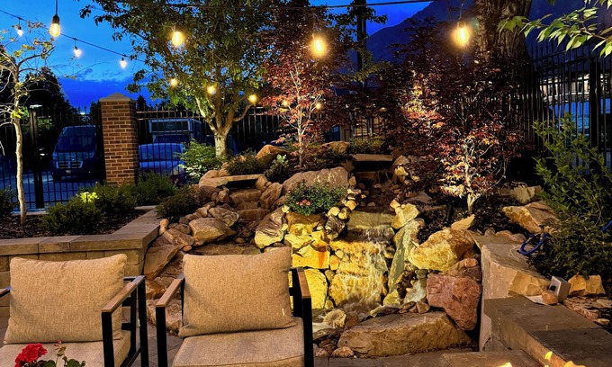 Well-lit path to entrance